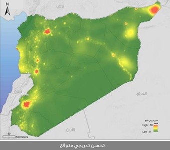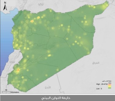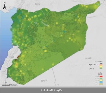 ومن هذه الخارطة المركبة تظهر لدينا الخارطة التي تعتمد الاستدامة لكل المشاريع التنموية ضمن SDGs، سميت خارطة النظام البيئي السوري ECO-SYSTEM