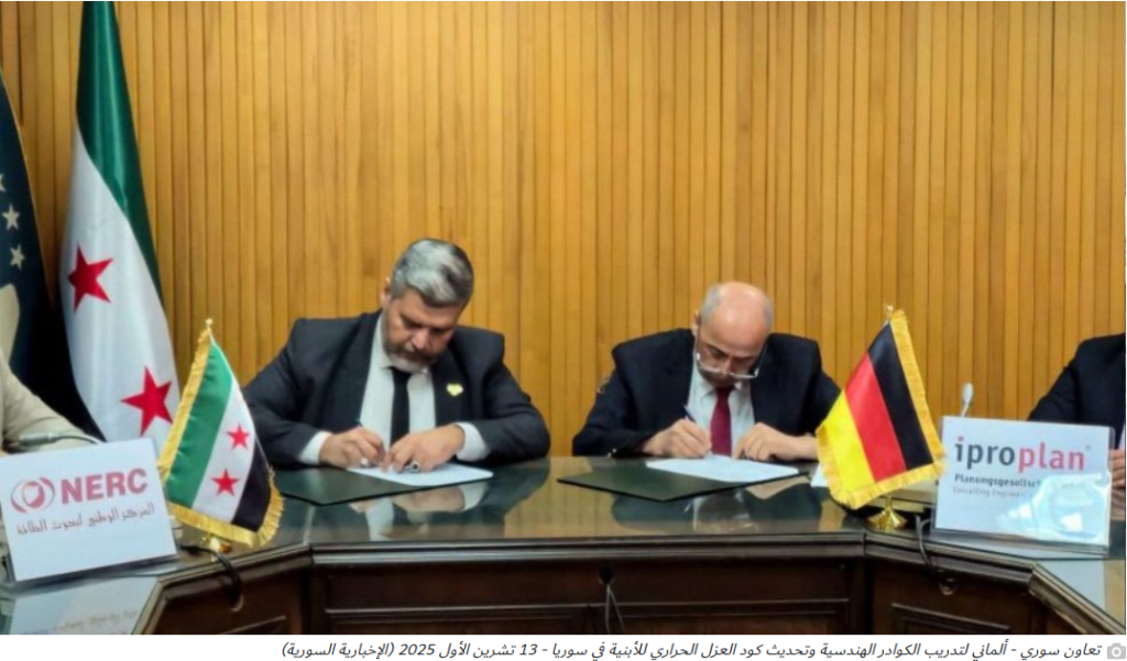 - Enab Baladi (English Edition). Syrian-German Cooperation to Update Syria’s Thermal Insulation Code for Buildings (October 2025). https://english.enabbaladi.net