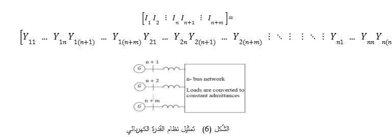 ثم تحويل جميع الأحمال إلى سماحيات. نضيف عدد قضبان التّجميع m-buses إلى الشّبكة n-buses كما في الشّكل (6) لإدراج التّوتر خلف المُفاعلة العابرة. حيث: