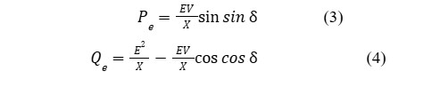 في المُولّد التّزامني، يتسارع الدّائر أثناء الاضطراب، عندما يكون العزم الميكانيكي أكبر من العزم الكهربائي. على العكس من ذلك، يتباطأ الدّائر عندما يكون العزم الميكانيكي أقل من العزم الكهربائي كما هو موضح في الشّكل (5) (المرجع السّابق). يتم توفير الاستطاعة الفعلية والاستطاعة الرّدّية التي يتم توليدها بواسطة منبع التّوتر كما تُظهر المُعادلات (3) و (4). تزداد كمية الاستطاعة الفعلية مع زيادة δ حتى 90 درجة، لتصل إلى القيمة القصوى. بالتّالي، يتم استخدام δ لتمثيل كل من التّأرجح الميكانيكي للدّائر وزاوية القوة المحركة الكهربائية E. في الممارسة العمليّة، للحفاظ على الاستقرار الديناميكي للنّظام الكهربائي، يجب أن تكون الزّاوية δ بحدود 20o*.