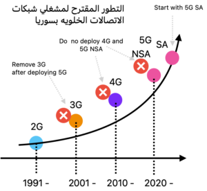 مع التحديات الكثيرة التي تواجه قطاع الاتصالات الخلوية في سوريا، هناك فرصة كبيرة، ولكن غير تقليدية للنهوض بالقطاع إذا طورت الشبكة عن طريق اضافه تقنية الـ 5G SA. بهذه الطريقة يمكن تسريع بناء شبكة غير معقدة وبأحدث التقنيات من الحاجة لتطوير شبكه الاتصالات بشكل متسلسل بإضافة التقنيات السابقة مثل ال 4G.